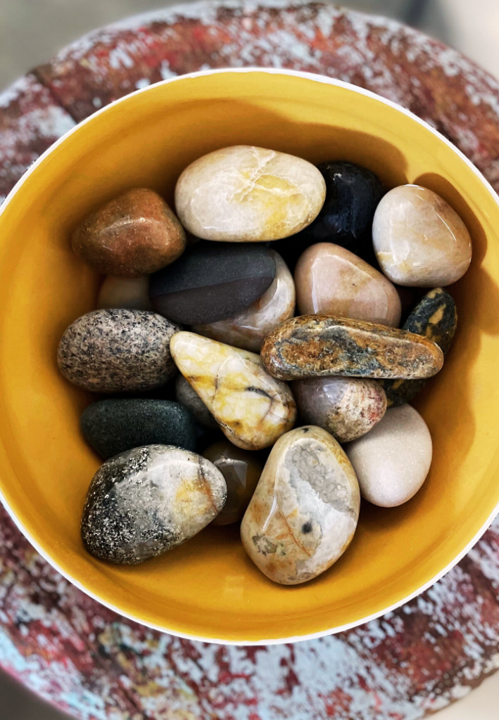 Every piece you see here is made by hand, using rocks thoughtfully collected from nature. Whether it’s a statement necklace, a set of stone coasters, or a simple magnet, each item is as unique as the rock it came from.